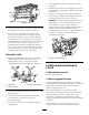 5. Aseta välikappaleet rullan kannattimissa oleviin ruuveihin. 6. Kiinnitä rullan kannatin ja välikappaleet sivulevyn kiinnityslaippojen alapuolelle aiemmin irrotetuilla muttereilla. 7. Varmista, että kiinteän terän kosketus kelaan on oikein säädetty. Kallista ruohonleikkuria, jotta etuja takarullat ja kiinteä terä tulevat näkyviin. Huomaa: Takarullan kohdistus kelaan määräytyy kokoonpanon osien työstötoleranssien mukaan, ja kohdistusta ei tarvitse tehdä.