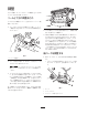 2. 後ローラの調整は以下の手順で行う: • カッティングユニットの後部を持ち上げてベッドナイ フの下に角材などの枕を置く。 • 各ローラ・ブラケットとスペーサをそれぞれのサイド プレート取り付けフランジに固定しているナット2個 を外す。 • サイドプレート取り付けフランジとスペーサから、 ローラとボルトを外す。 • • スペーサを、ローラ・ブラケットの上にしてボルトに通 す。 ローラ・ブラケットと2枚のスペーサとを、サイドプレ ート取り付けフランジの下側に、ボルトで取り付け る。 3. ベッドナイフとリールの調整を確認する。カッティング ユニットを立てて、前ローラと後ローラ、およびベッドナ イフが見えるようにする。 注: リールと後ローラとの平行関係は、カッティングユニ ット全体の組み立て精度により保証されていますから、調 整は不要です。ごくわずかの狂いの調整は以下の方法によ り可能です:カッティングユニットを定盤の上に載せ、サイ ドプレート固定キャップスクリュをゆるめる(図10)。全体 を調整してキャップスクリュを再度締め付ける。キャップス クリュを 3.7~4.6 kg.
