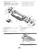 36. Levitä kerros rasvaa tasaajan suojuksessa olevan läpivientisuojuksen sisäpuolelle (Kuva 29). 44. Levitä 3/8 × 2 tuuman laippakantapultin uriin Loctitea. Kiinnitä käyttöpyörä akseliin laippakantapultilla (Kuva 31). Kiristä pultti momenttiin 46–54 N·m. 37. Löysää pultteja, jotka kiinnittävä rullaharjan laakeripesän rullaharjan asennuskannakkeeseen (Kuva 30). 38. Asenna rullaharjan kääntölevy (Kuva 30).