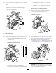 31. Irrota kaksi (2) 5/16 tuuman laippamutteria, jotka kiinnittävät tasaajan painon tasaajan suojukseen ja irrota paino (Kuva 28). Kuva 26 1. Kiristinpyörän jousi Kuva 28 3. Alempi tappi 2. Kiristinpyörän laatan kieleke 1. Tasaajan paino 4. Kuminen läpivientirengas 2. Tasaajan suojus 5. Suojuksen ruuvit (irrota) 3. Kiinteä läpivientisuojus 6. Kiristysruuvi (2) 30. Tarkista hihnan ja hihnapyörien kohdistus seuraavasti: • Aseta suorasyrjäviivain käyttö pyörän ulkosivua 32.