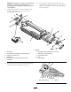 G011429 Figur 39 Figur 37 1. Borste 50. Smörj alla trimsatslagren (max. två eller tre pumpslag) (Figur 37). Använd inte för mycket fett då överskottsfett kan medföra att tätningarna slutar att fungera. Torka av överflödigt fett. 2. Kniv Viktigt: Remmarna måste lindas i rätt riktning runt trimkniven och -borsten.