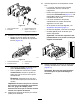 g009075 g009074 Figure 38 Figure 37 1. Logement de roulement libre 2. Joint d’étanchéité 1. Brosse pour grande hauteur de coupe 3. Arbre de brosse 3. Enlevez les 2 boulons en J et écrous (Figure 38). 4. Faites glisser la brosse existante pour la déposer de l'arbre (Figure 38). 5. Desserrez les 2 boulons, rondelles et écrous qui fixent le logement de roulement d'entraînement à son support (Figure 38). 6. Glissez la brosse pour grande hauteur de coupe sur l'arbre (Figure 38). 7.