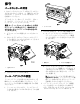 バーチカッターは、全部で 5 つある取り付 け位置のどこにでも取り付けることができま す。図 7 のように、取り付け位置によって油 圧モータの装着場所が変わりますから注意して ください。バーチカットユニットの右側に油圧 モータを取り付ける場合には、必ずユニット の左側にカウンタウェイトを取り付けます。ユ ニットの左側に油圧モータを取り付けた場合に は、必ずユニットの右側にカウンタウェイト を取り付けます。 2. スクレーパのロッドの位置を調整して、ス クレーパとローラとの間に 0~0.75 mm の すき間を作る。 3. スクレーパのロッドがローラおよび床面と 平行になっていることを確認する。 4. その後、フランジナットを締めて調整を固 定する。 6 移動用ローラを調整する 必要なパーツはありません。 図7 手順 整備場の床にバーチカッターを降ろすときや トラクションユニットから外して床に置く場 合には、ブレードが床にあたって破損しない よう、必ず移動用ローラを降ろしてください (図 6)。 1. 移動用ローラ・ブラケットをサイドプレート のピンに固定しているコッターピンを外す。 2.