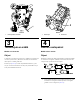 Kuva 3 Kuva 4 1. Leikkuuyksikön tukiteline 1. Takasuojus 3 2. Kantaruuvi 4 Takasuojuksen säätö Asenna vastapainot Mitään osia ei tarvita Mitään osia ei tarvita Ohjeet Ohjeet Useimmissa olosuhteissa paras levitys saadaan, kun takasuojus on kiinni (eteen heitto). Raskaissa tai märissä olosuhteissa takasuojusta voidaan pitää auki. Kaikkien toimitettujen leikkuuyksiköiden vasempaan päähän on asennettu vastapaino. Määritä seuraavan kaavion avulla vastapainojen ja kelamoottorien sijainti.