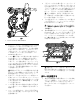 注 リールベアリングに予負荷を掛ける必 要はありません。リールベアリング調整 ナットを締め付けすぎるとベアリングを 破損しますから注意してください。 4. ベアリングハウジングにベアリング調整ナッ トを固定している固定ネジを締め付ける。 1.4-1.7 N-m0.14-0.17 kg.m=12-15 in-lbにトルク締 めする。 ベッドバーの整備 図 30 ベッドバーの取り外し 1. 1. 2. ベッドバー調整ねじを左に回してベッドナイ フとリールの接触をなくす図 28。 ベッドバーボルト ナット 3. スチール製ワッシャ 4. ナイロン製ワッシャ ベッドバーの取り付け 図 28 1. 2. ベッドバー調整ネジ 3. スプリングテンション・ナット 4. ベッドバー ワッシャ 2. スプリングテンション・ナットをゆるめて、 ワッシャがベッドバーを全く押さないように する 図 28 。 3. ベッドバーボルト図 29を固定しているロック ナット機体両側をゆるめる。 1. ベッドバー・アジャスタとワッシャとの間に ベッドバーの固定用耳を入れる。 2.