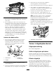 Figur 3 Figur 4 1. Stöd till klippenheten 1. Bakre skydd 3 2. Huvudskruv 4 Justering av det bakre skyddet Montera motvikterna Inga delar krävs Inga delar krävs Tillvägagångssätt Tillvägagångssätt Under de flesta förhållanden uppnås bästa spridning när det bakre skyddet är stängt (främre avlastning). Vid tunga eller våta förhållanden kan det bakre skyddet öppnas. Alla klippenheter levereras med motvikten monterad på vänster sida.