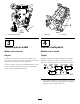 Kuva 3 Kuva 4 1. Leikkuuyksikön tukiteline 1. Takasuojus 3 2. Kantaruuvi 4 Takasuojuksen säätö Asenna vastapainot Mitään osia ei tarvita Mitään osia ei tarvita Ohjeet Ohjeet Useimmissa olosuhteissa paras levitys saadaan, kun takasuojus on kiinni (eteen heitto). Raskaissa tai märissä olosuhteissa takasuojusta voidaan pitää auki. Kaikkien toimitettujen leikkuuyksiköiden vasempaan päähän on asennettu vastapaino. Määritä seuraavan kaavion avulla vastapainojen ja kelamoottorien sijainti.