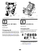 Serva klippenhetsdelar med dubbelpunktsjustering (DPA) 1. 2. 3. 4. Ta bort alla delar (se monteringsanvisningarna för HD DPA-satsen med modellnr 120-7230 och Figur 33). 5. Applicera monteringssmörjmedel på insidan av bussningsområdet på klippenhetens mittram (Figur 33). Rikta in nycklarna på flänsbussningarna mot skårorna på ramen och montera bussningarna (Figur 33). Montera en vågbricka på justeringsaxeln och skjut justeringsaxeln in i flänsbussningarna på klippenhetens ram (Figur 33).