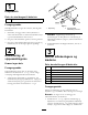 (leveres med traktoren) for at sikre, at møtrikkerne på den bageste del af bundtværstangens justeringsskruer ikke hviler på arbejdsfladen (Figur 8). Figur 9 2. Maskinskrue 1. Bagafskærmning Figur 8 6 1. Støtteben til klippeenhed 5 Montering af kontravægtene Kræver ingen dele Justering af bagafskærmning Fremgangsmåde Kræver ingen dele Alle klippeenheder leveres med kontravægten monteret i den venstre ende. Brug følgende diagram til at bestemme placeringen af kontravægte og cylindermotorer.