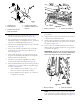 Figura 39 1. Perno de la barra de asiento 2. Tuerca 3. Arandela de acero 4. Arandela de nylon Ensamblaje de la barra de asiento 1. Instale la barra de asiento, posicionando las pestañas de montaje entre la arandela y el mecanismo de ajuste de la barra de asiento. 2. Sujete la barra de asiento a cada chapa lateral con los pernos de la barra (con tuercas en los pernos) y las 6 arandelas. Nota: Coloque una arandela de nylon en cada lado del saliente de la chapa lateral.