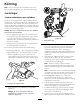 Figur 39 1. Bult för underknivsstång 3. Stålbricka 2. Mutter 4. Nylonbricka Montera underknivsstången 1. Montera underknivsstången genom att placera fästhandtagen mellan brickan och underknivsstångens justerare. 2. Fäst underknivsstången på vardera sidoplåten med tillhörande skruvar (muttrar på skruvar) och de sex brickorna. Obs: Sätt en nylonbricka på var sida om sidoplåtens nav. Placera en stålbricka på utsidan av varje nylonbricka (Figur 39). 3. Dra åt skruvarna för underknivsstången till 27–36 N·m.