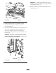 Huomaa: Jos leikkuuyksikkö halutaan asentaa kiinteästi, asenna ohjauksen lukitustappi kielekkeen asennusreikään (Kuva 13). 11. Pujota jousilanka ohjauksen lukitustapin alaosan ympärille (Kuva 13). Kuva 14 1. Nostoketju 2. Lukkotappi 8. Päällystä kelamoottorin ura puhtaalla rasvalla. 9. Voitele kelamoottorin O-rengas ja asenna se moottorin laippaan. 10. Asenna moottori kiertämällä sitä myötäpäivään niin, että moottorin laipat eivät kosketa kantaruuveja (Kuva 15).