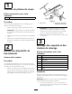 Mise en service Pièces détachées Reportez-vous au tableau ci-dessous pour vérifier si toutes les pièces ont été expédiées. Description Procédure 1 2 Qté Plateau de coupe 1 Contrôlez le plateau de coupe. Aucune pièce requise – Retrait des dispositifs de basculement. Chaîne de levage Support de chaîne 5/7 5/7 5/7 Étrier fileté 3 10/14 5/7 5/7 5/7 Écrou Vis Rondelle Écrou 4 5 6 7 Utilisation Montage des supports et des chaînes de relevage.