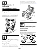 Bemærk: Fjern kontravægten (Figur 11). 7 Montering af klippeenhederne Dele, der skal bruges til dette trin: 5/7 Stor O-ring 2 Skrue Fremgangsmåde 1. Indsæt en trykskive på drejeleddets vandrette aksel som vist i Figur 13. Figur 11 1. Kontravægt 2. Fjern plastproppen fra lejehuset i højre ende af klippeenheden (Figur 12). 3. Fjern de to maskinskruer fra den højre sideplade (Figur 12). Figur 13 1. Bæreramme 4. Ringstift 2. Drejeled 5. Styrelåsestift 3. Løftearmens styreplade 2.
