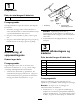 (leveres med traktoren) for at sikre, at møtrikkerne på den bageste del af bundtværstangens justeringsskruer ikke hviler på arbejdsfladen (Figur 8). Figur 9 2. Maskinskrue 1. Bagafskærmning Figur 8 6 1. Støtteben til klippeenhed 5 Montering af kontravægtene Kræver ingen dele Justering af bagafskærmning Fremgangsmåde Kræver ingen dele Alle klippeenheder leveres med kontravægten monteret i den venstre ende. Brug følgende diagram til at bestemme placeringen af kontravægte og cylindermotorer.