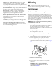 Figur 3 Figur 4 1. Stöd till klippenheten 1. Bakre skydd 3 2. Skruv 4 Justering av det bakre skyddet Montera motvikterna Inga delar krävs Inga delar krävs Tillvägagångssätt Tillvägagångssätt Under de flesta förhållanden uppnås bästa spridning när det bakre skyddet är stängt (främre utkast). Vid tunga eller våta förhållanden kan det bakre skyddet öppnas. Alla klippenheter levereras med motvikten monterad på vänster sida.