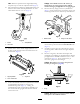 • Starta remmen på drivskivan (Figur 32). • Samtidigt som du för på remmen på drivskivan roterar du cylindern framåt och drar upp remmen på drivskivan. Obs: Ha på dig en vadderad handske eller använd en tjock trasa när du roterar cylindern. Viktigt: Kontrollera att räfflorna på remmen passar ihop med skårorna på varje remskiva. Kontrollera också att remmen är i mitten av mellanremskivan. Figur 34 46. Skjut ner mellanremskivan för att kontrollera att mellanremskiveenheten svänger fritt. 1. Remkåpa 47.