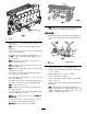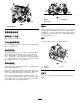 g031275 图9 g191072 图7 1. O 形圈 5. 安装滚刀马达润滑侧板直至多余的润滑脂流出润滑 孔 图6 。 1. 滚刀组 1 5. 滚刀组 5 2. 滚刀组 2 6. 滚刀马达 3. 滚刀组 3 7. 配重块 4. 滚刀组 4 锁定转向 5 要锁定固定滚刀组的转向用锁扣销 图10 将轴轭固定到 承载架上。 调节滚刀组转向 不需要零件 增强后滚刀组转向力度 拆去后滚刀组2 号和 3 号滚刀组承载架上的 2 个枢轴垫 片、六角螺丝和凸缘锁紧螺母图8 增强后滚刀组的转向力 度 请参阅 图9。 1 1 G015977 g015977 图 10 2 1. 锁扣销 注意 在山坡上剪草时 建议固定转向。 3 G015978 4 g015978 图8 1. 六角头螺丝 3. 承载架 2. 枢轴隔片 4.
