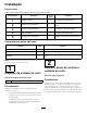 Instalação Peças soltas Utilize a tabela abaixo para verificar se todas as peças foram enviadas. Procedimento 1 2 3 4 5 Quantidade Descrição Utilização Unidade de corte 1 Inspeção da unidade de corte. Nenhuma peça necessária – Utilizar o apoio ao inclinar a unidade de corte. Nenhuma peça necessária – Afinação do resguardo traseiro. Bocal de lubrificação reto Anel de retenção 1 1 Instalação das peças soltas. Nenhuma peça necessária – Ajustar a direção da unidade de corte.