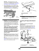 Bemærk: Justeringsknapperne har låse, der svarer til en bevægelse af bundkniven på 0,018 mm for hver angivet position. Se Justering af bundkniven mod knivcylinderen (side 9). 2. Afprøv klippeydelsen ved at indsætte en lang stribe klippeydelsespapir (Toro-del 125-5610) mellem knivcylinderen og bundkniven, vinkelret med bundkniven (Figur 7). Drej langsomt knivcylinderen fremad. Den bør klippe papiret. g031270 Figur 8 1. Indføring af den afskråede kant i bundknivens højre ende 2. 6 mm 3.