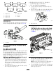 HD 듀 얼 포 인 트 조 정 장 치 (DPA) 정 비 4. 웨이브 와셔를 조정 장치 샤프트에 설치하고 조 정 장치 샤프트를 커팅 유닛 프레임의 플랜지 부 싱 안쪽으로 밀어 넣습니다(그림 36). 1. 모든 부품을 뺍니다(HD DPA 키트의 설치 지침 및 그림 36 참조). 5. 조정 장치 샤프트를 플랫 와셔와 록너트로 고정 합니다(그림 36). 2. 커팅 유닛 가운데 프레임의 부싱 영역의 안쪽에 고착 방지제를 바릅니다(그림 36). 6. 록너트를 20~27 N·m 토크로 조입니다. 3. 플랜지 부싱의 걸림 장치를 프레임의 슬롯에 일 치시킨 다음 부싱을 설치합니다(그림 36). 참고: 베드바 조정 장치 샤프트에는 좌측 나 사산이 있습니다. g016926 그 림 36 1. 샤프트 조정 장치 2. 3. 웨이브 와셔 플랜지 부싱 고착 방지제를 이곳에 바릅 니다. 5. 플랫 와셔 6. 록너트 4. 고착 방지제를 이곳에 바릅 10. 니다. 8. 베드바 조정 나사 11. 9.