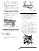 11 10 g016926 7 9 8 4 6 5 2 3 1 g016926 図 34 1. シャフトアジャスタ 2. ウェーブワッシャ ここに固着防止コンパウンド を塗る. 5. 平ワッシャ 3. フランジブッシュ 6. 4. ロックナット 7. ここに固着防止コンパウンド 10. を塗る. 圧縮スプリング 8. ベッドバー調整ねじ スプリングテンションナット 9. 硬化ワッシャ 11. 6. アジャスタシャフトに嵌るベッドバー調整ね じのねじ山部分に固着防止コンパウンドを塗 布する 11. 各ベッドバーアジャスタアセンブリを締め付 けて圧縮スプリングを完全に圧縮し、そこか ら1/2回転だけ戻す図 34。 7. ベッドバー調整ねじをアジャスタシャフトに はめ込む。 12. カッティングユニットの反対側についても同 じ作業を行う。 8. 硬化ワッシャ、スプリング、スプリングテン ションナットをアジャスタねじに仮止めする。 13. リールと下刃の調整を行う 9.