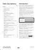 Table des matières Introduction Page Introduction . . . . . . . . . . . . . . . . . . . . . . . . . . . . . . . . 2 Sécurité . . . . . . . . . . . . . . . . . . . . . . . . . . . . . . . . . . . 3 Autocollants de sécurité et d’instructions . . . . . . 3 Caractéristiques techniques . . . . . . . . . . . . . . . . . . . . 3 Spécifications générales . . . . . . . . . . . . . . . . . . . 3 Accessoires en option . . . . . . . . . . . . . . . . . . . . . 4 Assemblage . . . . . . . . . . . . . . . . . . . . . .