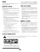 안전 나와 있는 안전 지침을 따르고 주의, 경고, 위험 등의 개인 안전 지침을 의미하는 안전 경고 기호 에 항상 주의를 기울이십시오. 이 지침을 따르지 않을 경우 사 람이 다치거나 사망하는 사고가 발생할 수 있습니다. 이 장비는 EN ISO 5395 및 ANSI B71.4-2017에 일치 하도록 고안되었습니다. 커팅 유닛 안전성 일반적인 안전성 이 제품에서는 손이나 발이 절단될 수 있습니다. 항 상 모든 안전 지침을 준수하여 사람이 심하게 다치는 일을 방지하십시오. • 장비를 시동하기 전에 이 사용 설명서 의 내용을 읽 고 숙지하십시오. • 장비를 작동하는 동안에는 온전히 주의를 기울이 십시오. 주의력을 산만하게 하는 활동을 하면, 사 람이 다치거나 자산이 손상될 수 있습니다. • 장비의 움직이는 부품 근처에 손이나 발을 두지 마십시오. • 장비에 모든 보호 장치 및 기타 안전 보호 장치가 제자리에 장착되어 제대로 작동하지 않는 상태에 서는 장비를 운전하지 마십시오.