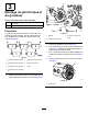 réglage de la profondeur pour obtenir le réglage voulu. Réglage du déflecteur d'herbe arrière Remarque: Si la pelouse est parsemée de nombreux débris ou envahie de chaume, ouvrez le déflecteur d'éjection arrière pour permettre aux débris d'être éjectés du cylindre. 1. 2. Éloignez ou rapprochez les tiges de racloir de manière à obtenir un espace de 0,0 à 0,75 mm (0,0 à 0,03 po) entre le racloir et le rouleau. 3. La tige de racloir doit être parallèle au rouleau et à la surface du sol. 4.
