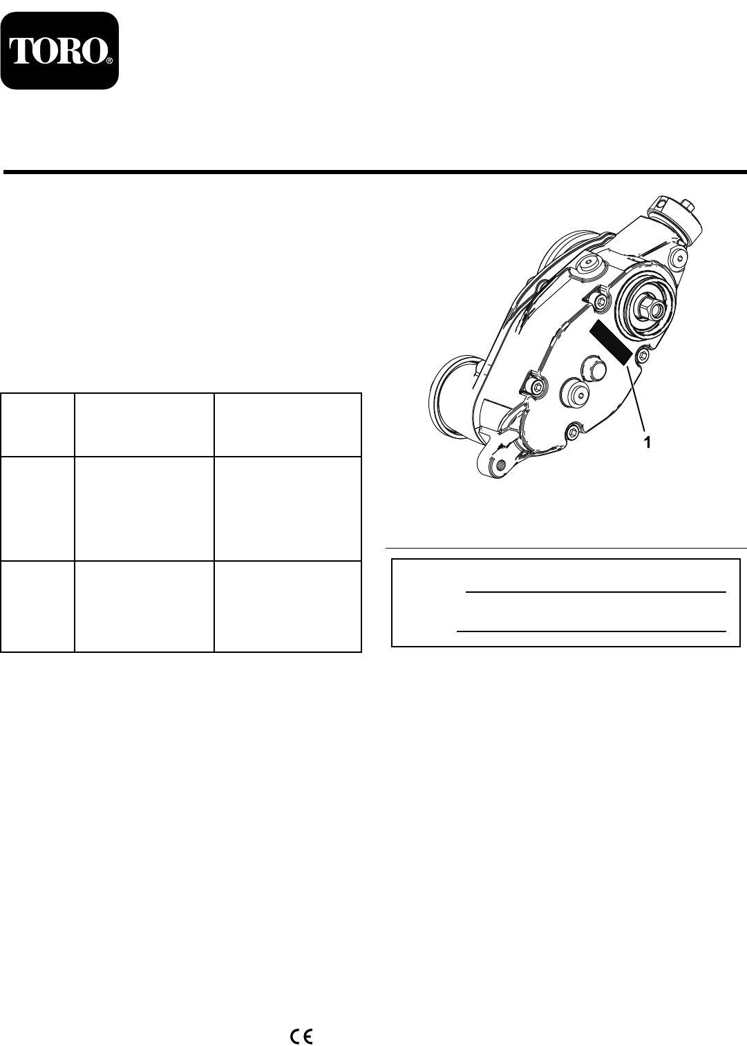 Sammenstillingserklæring The Toro Company, 8111 Lyndale Ave. South, Bloomington, MN, USA erklærer at følgende enheter er i samsvar med følgende direktiver, når de er montert i henhold til de medfølgende instruksjonene for bestemte Toro-modeller som indikert i den relevante samsvarserklæringen. Modellnr. 3763 03768 Serienr.
