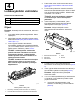 10 Taivutetun liittimen asennus Reelmaster 3550/3555: vain keski-etuleikkuuyksikön (nro 1) sijainti ja sarjamalli 133-0150 g032402 Kuva 21 1. Harja 5. 2. Terä Vaiheeseen tarvittavat osat: Kiedo hihnat löysästi kuvan (Kuva 19) mukaisesti tasaajakelan akselin ja harjojen ympärille ja työnnä hihnat harjojen uriin (Kuva 21). 1 Asettele hihnat harjoille seuraavan taulukon mukaisesti: Kelan koko Hihnan väli 46 cm Aseta hihnat seuraavien terien väliin: 2 ja 3; 11 ja 12; 21 ja 22; 30 ja 31.
