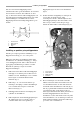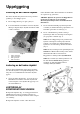 Underhåll 1 2 1 Figur 21 1. Underknivens justerratt 2. Figur 23 1. Ställskruv 2. Lagrens justermutter Håll i cylinderaxeln och försök flytta cylindern i sidled (fig. 22). Justering av enkelpunktsfjäder Om man behöver ta bort enpunktsjusteringen (fig. 24) för service ska man se till att fjädern sammanpressas till en längd på 32mm. Denna justering görs genom att dra åt muttern på rattaxeln. Obs: Justeringsskruven för enkelpunktsfjädern har vänstergängor. Figur 22 3.