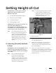 Setting Height-of-Cut Table 1—New Cutting Unit Set Up Guide Desired Height-of-Cut (HOC) (in) (mm) 0.375 (10) 0.500 (13) 0.625 (16) 0.750 (19) 0.875 (22) 1.000 (25) 1.125 (29) 1.250 (32) 1.375 (35) 1.500 (38) 1.625 (41) 1.750 (45) Desired Attitude (degrees) 2* 4* 6* 8* 2* 4* 6* 8* 2 4 6 8 2 4 6 8 2 4 6 8 2 4 6 8 2 4 6 8 2 4 6 8 2 4 6 8 2 4 6 8 2 4 6 8 2 4 6 8 2 4 6 8 Second Screw “A” (Fig. 7) (in) (mm) 0.180 4.6 0.231 5.9 – – – – 0.299 7.6 0.356 9.0 0.414 10.5 – – 0.228 5.8 0.285 7.