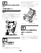 芝などのように草が非常に重い時はシールドを 開ける方が良い場合もあります。 4 シールド(図 9)を開けるには、シールドを左 サイドプレートに固定しているキャップスク リュをゆるめ、シールドを開位置にセットし、 キャップスクリュを締めてください。 カッティングユニットのキックスタ ンド この作業に必要なパーツ 1 キックスタンド(トラクションユニットの付属品) 手順 ベッドナイフやリールを見るためにカッティ ングユニットを立てる場合には、ベッドバー調 整ネジのナットが床面に接触しないように、 カッティングユニットの後ろ側についている キックスタンド(スタンドはトラクションユ ニットの付属品です)で支えるようにしてく ださい(図 8)。 図9 1. 後シールド 2. キャップスクリュ 6 カウンタ・ウェイトを取り付ける 必要なパーツはありません。 手順 図8 1.