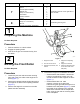 Procedure 7 8 Description Use Qty. Bearing Adapter Spacer Groomer-plate assembly Adapter ring Bolt (1/4 x 3-3/4 inches) Star washer Fastener retainer Weight Shaft clamp Bolt (1/4 x 1-1/4 inches) Jam nut Groomer reel (obtain separately) 1 2 1 1 2 2 2 1 4 4 4 1 Install the groomer on the right side of the machine. Install the grooming reel. 1 Preparing the Machine No Parts Required Procedure 1. Park the machine on a level surface. 2. Engage the parking brake. 3.