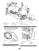 g245796 Figure 6 1. Locknut 5. Adjustment knob assembly 13. Adapter ring 9. Groomer housing 2. Bolt (3/8 x 5/8 inch) 6. Spacer 10. O-ring 3. Curved washer 7. Bearing adapter 11. Slot cover (flat edge down) 4. Mounting block 8. Flat-head screw 12. Gasket 6. Install the O-ring into the back of the groomer housing (Figure 6 and Figure 7) and lightly lubricate the exposed surfaces of the O-ring with synthetic grease (supplied with the kit). g020844 Figure 8 g020843 Figure 7 1. O-ring 7.