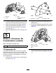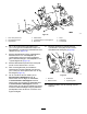g020847 Figur 19 1. Skruv med platt huvud 4. Distansbricka 7. Skruv 2. Trimsatsarmens kåpa 5. Justeringsrattens monteringsblock 8. Adapterring 3. Lageradapter 6. Böjd bricka 9. Trimsatsplåt 10. För in de två skruvarna med platt huvud (⅜ x 2 tum) genom trimsatsarmens kåpa och lageradaptern och placera en distansbricka över vardera skruven (Figur 19). 11.