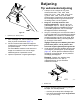 Bemærk: Flex 1800-, 1820- og 2100- og fastgør skinnerne til anhængeren, juster skinnernes position, så skinnehjulene er centreret, og stram derefter fastgørelsesanordningerne. 2120-serien bruger en anden hjulforskydning end alle andre Toro Greensmowers. Læs og følg monteringsvejledningerne, der er præget i hjulenes sider. 5. Sluk for motoren, og aktiver parkeringsbremsen. 6.