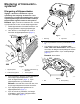 Montering af hjulene og trimmerakslen 3. Fastgør drivsamlingen på den bageste monteringsplade med 4 skruer (Figur 9). 4. Påfør fedt på pakningen i drivsamlingens lejestøtte og på den notede ende af trimmerakslen (Figur 10). 1. Fastgør den bageste monteringsplade med 2 ansatsbolte som vist i Figur 8. Bemærk: Sørg for, at sidepladen kan dreje frit. g030169 Figur 10 G018179 5. Trimmeraksel 3. Drivtandhjul 6. Mellemhjul 6. Skyd trimmerakslens notede ende ind i drivsamlingens støtteleje (Figur 10).