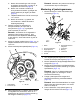 3 2 1 g030181 G018184 Figur 14 1. Rulle 2. Kort bolt g018184 7. Monter bøsningen i hullet i trimmerens venstre drivsamling (Figur 13) Figur 15 1. Bolt 8. Skru klippehøjdejusteringsskruen ind i den øverste del af venstre justeringsarm (Figur 13). 3. Pakning 2. Gearkassens dæksel 9. Indsæt rulleakslen i venstre justeringsarm. 14. Centrer rullen mellem justeringsarmene, og spænd monteringsboltene (Figur 14). Bemærk: Tilspænd ikke bolten på dette tidspunkt. 15.