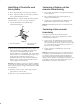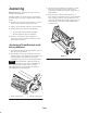 Indstilling af frontrulle mod knivcylinder Justering af højden på den øverste afskærmning 1. Placer klippeenheden på en flad og plan overflade. 1. Løsn de bolte og møtrikker, der fastgør afskærmningen på hver sideplade. 2. Placer en plade på 6 mm eller mere under cylinderens knive og mod bundknivens forside. 2. Placer afskærmningen i den ønskede position, og fastgør lukkemekanismerne. Bemærk: Sørg for, at pladen dækker den fulde længde af cylindernes knive, og at tre knive rører ved pladen. 3.