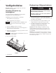 Indstilling af frontrulle mod knivcylinder Justering af højden på den øverste afskærmning 1. Placer klippeenheden på en flad og plan overflade. 1. Løsn de bolte og møtrikker, der fastgør afskærmningen på hver sideplade. 2. Placer en plade på 6 mm eller mere under cylinderens knive og mod bundknivens forside. 2. Placer afskærmningen i den ønskede position, og fastgør lukkemekanismerne. Bemærk: Sørg for, at pladen dækker den fulde længde af cylindernes knive, og at tre knive rører ved pladen. 3.