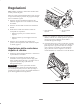 Livellamento del rullo anteriore rispetto al cilindro Regolazione dell’altezza del deflettore superiore 1. Collocate l’apparato di taglio su una superficie piana e liscia. 1. Allentate i bulloni e i dadi che fissano il deflettore a ciascuna piastra laterale. 2. Inserite una piastra di 6 mm, o più alta, sotto le lame del cilindro e contro la superficie anteriore della controlama. 2. Regolate il deflettore nella posizione ottimale, e serrate dispositivi di fermo. 3.