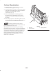 Justere fremre valse til spolen Justere den øverste skyddhøyden 1. Sett klippeenheten på en jevn flate. 1. Løsne boltene og mutterne som fester skyddet til hver sideplate. 2. Plasser en plate på en 6 mm eller tykkere under spoleknivene, slik at den vender mot fronten av motstålet. 2. Flytt skyddet til ønsket stilling, og trekk til festene. Obs: Sørg for at platen dekker den fulle lengden av spolebladene og at tre blader er i kontakt med platen. 3.