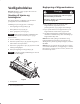 Indstilling af frontrulle mod knivcylinder Justering af højden på den øverste afskærmning 1. Placer klippeenheden på en flad og plan overflade. 1. Løsn de bolte og møtrikker, der fastgør afskærmningen på hver sideplade. 2. Placer en plade på 6 mm eller mere under cylinderens knive og mod bundknivens forside. 2. Placer afskærmningen i den ønskede position, og fastgør lukkemekanismerne. Bemærk: Sørg for, at pladen dækker den fulde længde af cylindernes knive, og at tre knive rører ved pladen. 3.