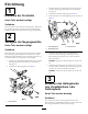 6 Montieren des Vertikutierers Keine Teile werden benötigt Wichtig: Wenn die Vertikutierspindel eine negative Einstellung hat, müssen Sie darauf achten, dass die Messerspindeln durch einen Kontakt mit Betonböden oder gepflasterten Oberflächen nicht beschädigt werden. Hinweis: Der Vertikutierer wird im Werk für Linksverkehr konfiguriert. Sie müssen ihn ggf. für den Rechtsverkehr konfigurieren. Siehe 2 Verlagern der Gegengewichte (Seite 5).