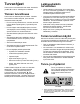 Turvaohjeet Leikkuuyksikön turvallisuus Tämä kone on suunniteltu EN ISO 5395 -standardin ja ANSI B71.4:2017 -määrityksen mukaisesti. • Leikkuuyksikkö on kokonainen kone vasta sitten, kun se on asennettu ajoyksikköön. Lue ajoyksikön käyttöoppaasta huolellisesti kaikki koneen turvallista käyttöä koskevat ohjeet. Yleinen turvallisuus • Jos kone osuu esteeseen tai tärisee epätavallisesti, Tämä tuote voi katkaista jalan tai käden.