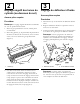 2 3 Réglage négatif des lames du cylindre (au-dessous du sol) Réglage du déflecteur d'herbe Aucune pièce requise Aucune pièce requise Procédure Procédure 1. Desserrez les (2) vis de fixation du déflecteur d'herbe avant. Remarque: Le réglage négatif maximum recommandé est 1/4” de pénétration des lames. 2. Réglez le déflecteur d'herbe à la position voulue et serrez les vis de fixation. 1. Placez le groupe défeutreur sur une surface plane et horizontale. 3.