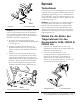 2 3 Einstellen der Messerspindeln für eine negative Einstellung (unter Bodenniveau) Einstellen der Grasabdeckung Keine Teile werden benötigt Verfahren Keine Teile werden benötigt 1. Lösen Sie die zwei (2) Kopfschrauben, mit denen die vordere Grasabdeckung befestigt ist. Verfahren 2. Stellen Sie die Grasabdeckung wie gewünscht ein und ziehen Sie die Kopfschrauben fest. Hinweis: Die empfohlene negative Höchsteinstellung ist ein Eindringen der Messerspindeln um 6 mm in den Boden. 3.