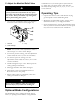 2 3 Adjusting the Reel Blades For Negative Setting (Below Ground) Adjusting the Grass Shield No Parts Required Procedure No Parts Required 1. Loosen (2) capscrews retaining front grass shield. 2. Adjust grass shield to desired setting and tighten capscrews. 3. Rotate dethatcher blades to insure blades do not contact or interfere with grass shield. Procedure Note: Maximum recommended negative setting is 1/4” deep blade penetration. 1. Place dethatcher unit on a level surface.